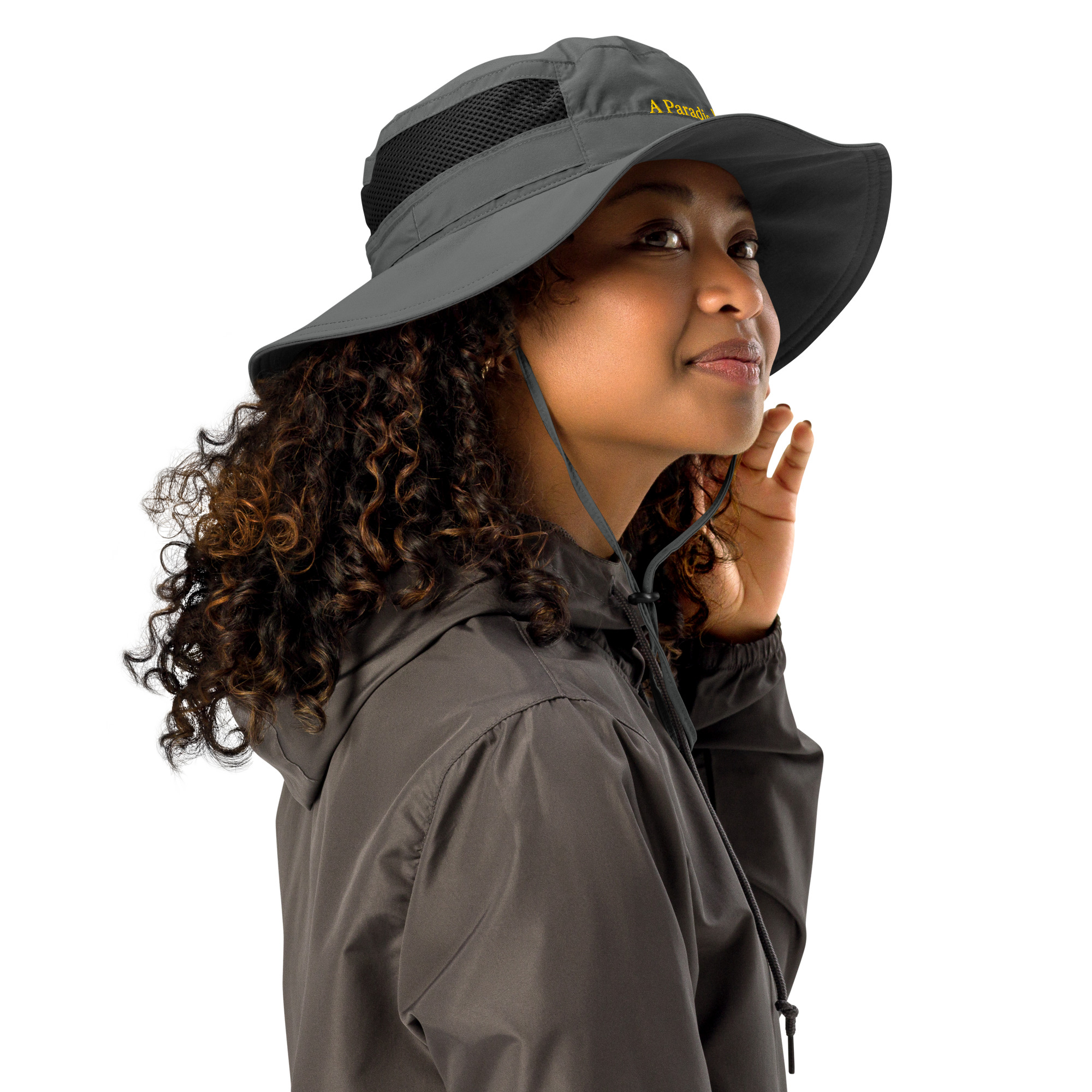 • 100% textured nylon poplin top, sides and brim